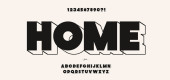 Retro czcionka ze słowem dom. Czcionka skryptu wektorowego.Wybrane litery w starym stylu. Alfabet 3D