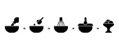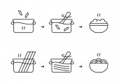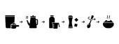 Instrukcja dotycząca natychmiastowej owsianki. Piwowarskie lub wrzące płatki z dodatkiem soli, polewy. Kroki do domowej roboty płatki, owsianka. Schemat gotowania opakowań. Wyizolowany wektor konturu, czarne ikony liniowe
