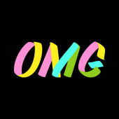 Ręcznie rysowana farba OMG na czarnym tle. Projektowanie szablonów pism na kartki okolicznościowe, nakładki, plakaty