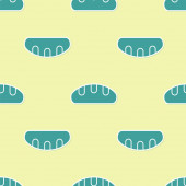 Zielona ikona wędki odizolowany bezszwowy wzór na żółtym tle. Złap grubą rybę. Sprzęt wędkarski i zagadnienia hodowli ryb. Wektor.