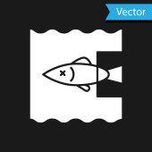 Ikona białego rekina odizolowana na czarnym tle. Wektor..