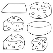 Ikona zestawu serów izolowana na białym. Jedzenie z szablonów. Ilustracja wektora szkicu. EPS 10