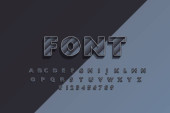 Papierowe litery i numery alfabetu na jasnoszarym tle. duże litery dla Twojego alfabetu ad.3D.