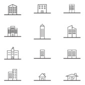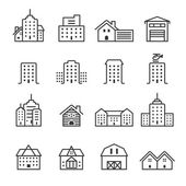 budynki miejskie linia styl ikona zestaw wektor projekt