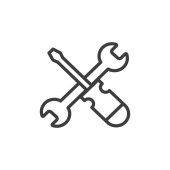 Śrubokręt i klucz Czerwona ikona na białym tle. Czerwony styl płaski wektor ilustracji