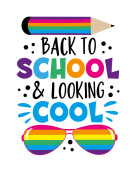 Powrót do szkoły - tekst w okularach przeciwsłonecznych. Nadaje się do druku koszuli, plakat, baner, karta, kubek i projekt prezentów dla dzieci