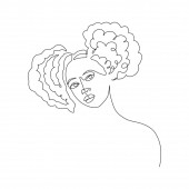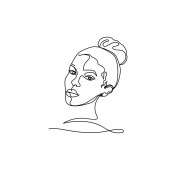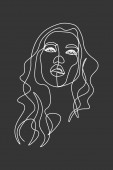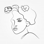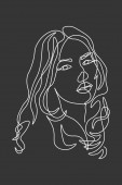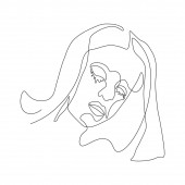 Ciągła linia, rysunek twarzy i fryzury, koncepcja mody, kobieta piękno minimalistyczne, ilustracja dość sexy. do t-shirt, slogan projekt graficzny styl wydruku