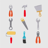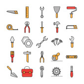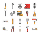 konserwacja narzędzi i sprzęt budowlany ikony ustawić linię i wypełnić