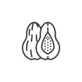 Ikona linii owoców awokado. liniowy znak stylu dla mobilnej koncepcji i projektowania stron internetowych. Zmniejszona o połowę ikona wektora awokado. Symbol, ilustracja logo. Grafika wektorowa