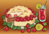 Słodycze, jagody, owoce, napoje ilustracja