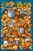 Słodycze, jagody, owoce, napoje ilustracja