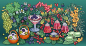 Słodycze, jagody, owoce ręcznie rysowane ilustracja