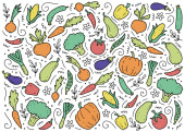 Ręcznie narysowany zestaw warzyw. Ilustracja wektorowa stylu doodle skecth.