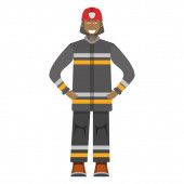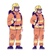 Zdjęcie "Postać strażaka stojącego na białej, płaskiej ilustracji wektora. Człowiek mężczyzna i kobieta ważna działalność zawodowa strażaka, uśmiechnięci ludzie zawód, zajęcie społeczne." może być wykorzystywane do celów osobistych i komercyjnych zgodnie z warunkami zakupionej licencji Royalty-free. Obraz jest dostępny do pobrania w jakości wysokiej rozdzielczości do 5760x3840.