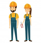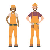 Znakomity pracownik stojący na białej, płaskiej ilustracji wektora. Ludzki mężczyzna i kobieta ważna ciężka praca zawodowa, uśmiechnięty zawód, zawód społeczny.