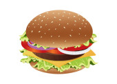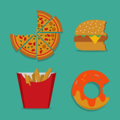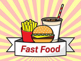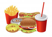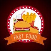 Wektor Fast food na żółtym tle. hamburger z serem, frytki i kubek z napojami. realistyczny styl wektor ilustracji