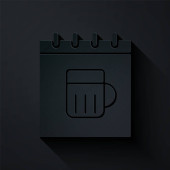 Papier cut Filiżanka herbaty i ikona liści izolowane na czarnym tle. Papier w stylu sztuki. Wektor.
