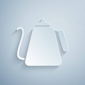 Pokrojony na papier Czajnik z ikoną uchwytu na szarym tle. Ikona czajnika. Papier w stylu sztuki. Wektor.