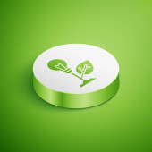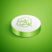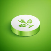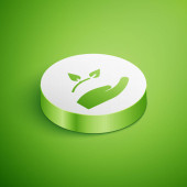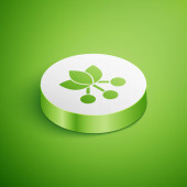 Isometryczna ikona serca odizolowana na zielonym tle. Pierwsza pomoc. Znak opieki zdrowotnej, medycznej i apteki. Biały przycisk koła. Wektor.