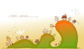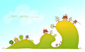 samochody i autobusy na wzgórzach "szczęśliwy świat" kolekcja