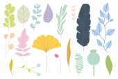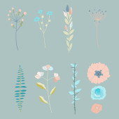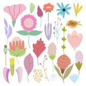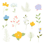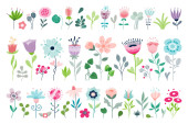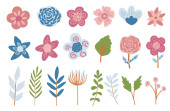 Zestaw ręcznie rysowane proste pastelowe kwiaty wektorowe i rośliny.