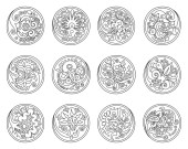 Wektorowy zestaw kręgów z etnicznymi kwiatowymi elementami abstrakcyjnymi