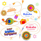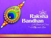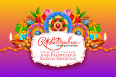 Karta okolicznościowa z dekoracyjnym Rakhi na tle Raksha Bandhan