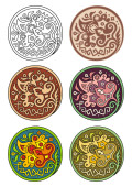 Wektorowy zestaw kółek z kwiatowymi elementami abstrakcyjnymi