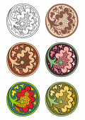 Wektorowy zestaw kółek z kwiatowymi elementami abstrakcyjnymi