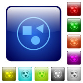 Ikony koła samochodu w zaokrąglonym kwadratowym kolorze błyszczący zestaw przycisków