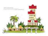 ilustracja Miasto i village, kolekcja "szczęśliwy świat"