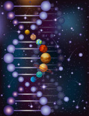 Kwas dezoksyrybonukleinowy DNA Ziemia, sztandar nocnego nieba, ilustracja wektora