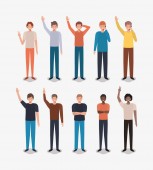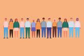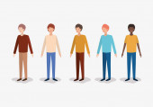 Kobiety i mężczyźni awatary kreskówki uśmiechające się na niebieskim tle wektor projektu