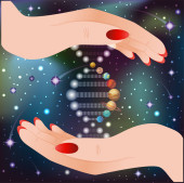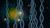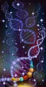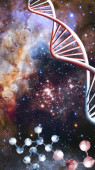 Płytki DNA kwasu dezoksyrybonukleinowego, baner nocnego nieba, ilustracja wektorowa