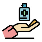 ręka z antybakteryjnej linii butelki mydła i wypełnić ikonę