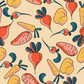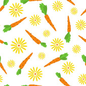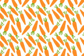 Małe i duże marchewki bezszwowy wzór do projektowania i craetivity, pomarańczowy świeże warzywa z zielonymi liśćmi