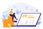 Biznes i finanse Koncepcja zwiększenia wykresu na ekranie komputera tła docelowej świnki pieniądze banku z płaskim stylu wektor projektu