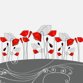 słodkie poziome bezszwowe wzór z czerwonym makiem kwiaty i wstążki