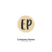 E P EP Wstępny projekt pisma ręcznego i logo podpisu z okręgiem. Piękny projekt ręcznie pisane logo mody, zespołu, ślubu, luksusowe logo.