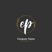E P EP Wstępny projekt pisma ręcznego i logo podpisu z okręgiem. Piękny projekt ręcznie pisane logo mody, zespołu, ślubu, luksusowe logo.