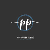 P PP Wstępne pismo i projekt logo podpisu z okręgiem. Piękny projekt ręcznie pisane logo mody, zespołu, ślubu, luksusowe logo.