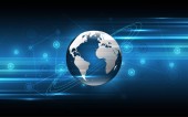 Struktura sieci w minimalnym stylu, projektowanie koncepcji telekomunikacyjnych i technologicznych, połączenia sieciowe, przejrzysta siatka geometryczna, ramy przewodów i globus ziemski - ilustracja wektorowa