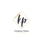 K P KP Wstępny projekt pisma i logo podpisu z okręgiem. Piękny projekt ręcznie pisane logo mody, zespołu, ślubu, luksusowe logo.