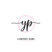 Y P YP Wstępny projekt pisma ręcznego i logo podpisu z okręgiem. Piękny projekt ręcznie pisane logo mody, zespołu, ślubu, luksusowe logo.