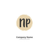 N P NP Wstępny projekt pisma ręcznego i logo podpisu z okręgiem. Piękny projekt ręcznie pisane logo mody, zespołu, ślubu, luksusowe logo.