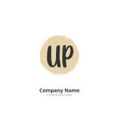 U P UP Wstępny projekt pisma i logo podpisu z okręgiem. Piękny projekt ręcznie pisane logo mody, zespołu, ślubu, luksusowe logo.