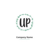U P UP Wstępny projekt pisma i logo podpisu z okręgiem. Piękny projekt ręcznie pisane logo mody, zespołu, ślubu, luksusowe logo.