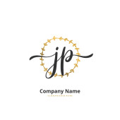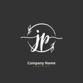 J P JP Wstępny projekt pisma i logo podpisu z okręgiem. Piękny projekt ręcznie pisane logo mody, zespołu, ślubu, luksusowe logo.