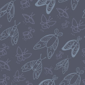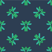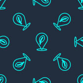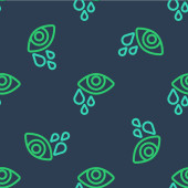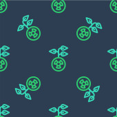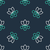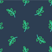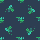Zielona linia Ziarna kawy, gałąź z ikoną liści i jagód odizolowany bezszwowy wzór na niebieskim tle. RoÅ liny z liÅ ci, jagody, owoce, nasiona. Ilustracja wektora.