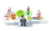 przemysłowej części miasta, koncepcja fabryki i produkcyjnej, kolekcja "szczęśliwy świat"